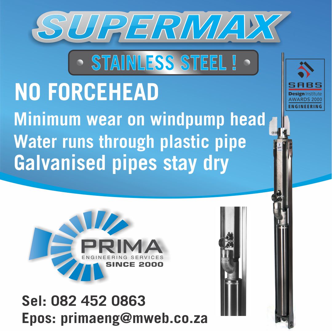 Hans gained further practical experience on their family farm in the Swartland, where he grew up. From a very young age he has been exposed to all aspects of the windmill, and was aware of the shortcomings of current borehole cylinders. With the development of his first borehole cylinder, SUPERMAX, his goal was to design a borehole cylinder that could pump water higher and further without the use of a forcehead or force cylinder. This could eventually improve the windmill design and eliminate current maintenance work.