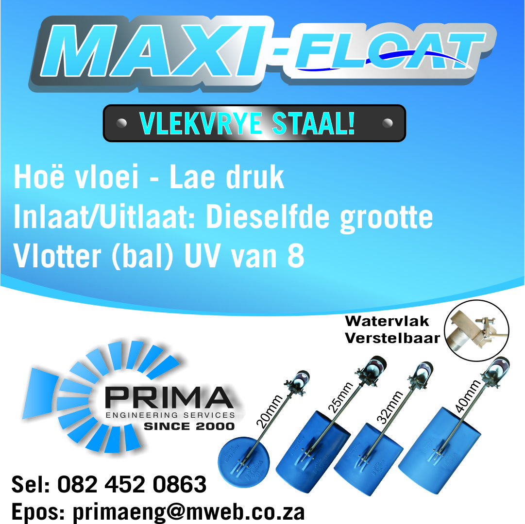 Die Maxi-Float reeks groottes is: 20mm, 25mm, 32mm en 40mm